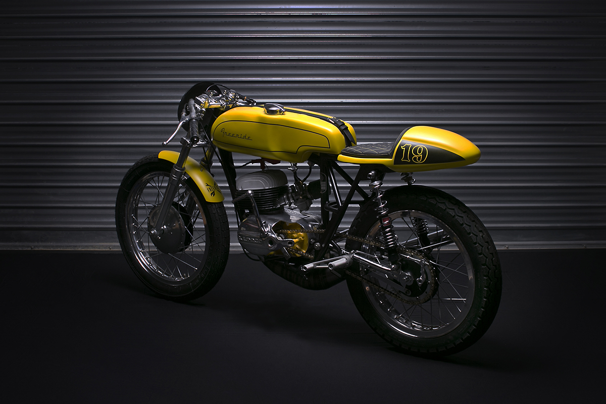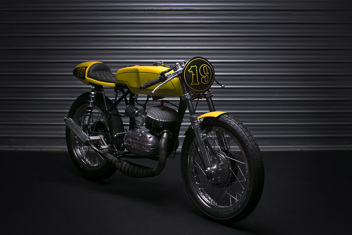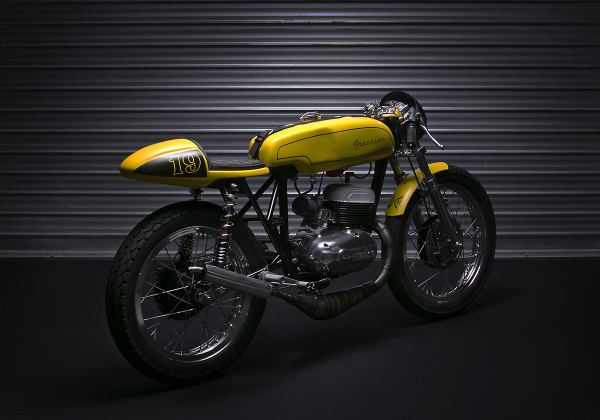 Najbardziej charakterystycznym elementem hiszpańskiego racera jest długi bak, o kształtach nawiązujących do wyścigówek Bultaco oraz zadupek imitujący Montesę 250GP. Sportowego sznytu dodaje również mała tabliczka z numerem startowym, zastępująca przedni reflektor i układ wydechowy ze starej Aprilli o pojemności 50cm3.