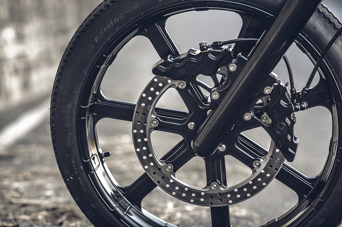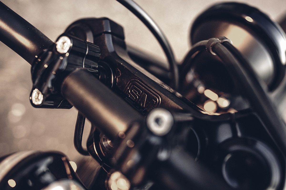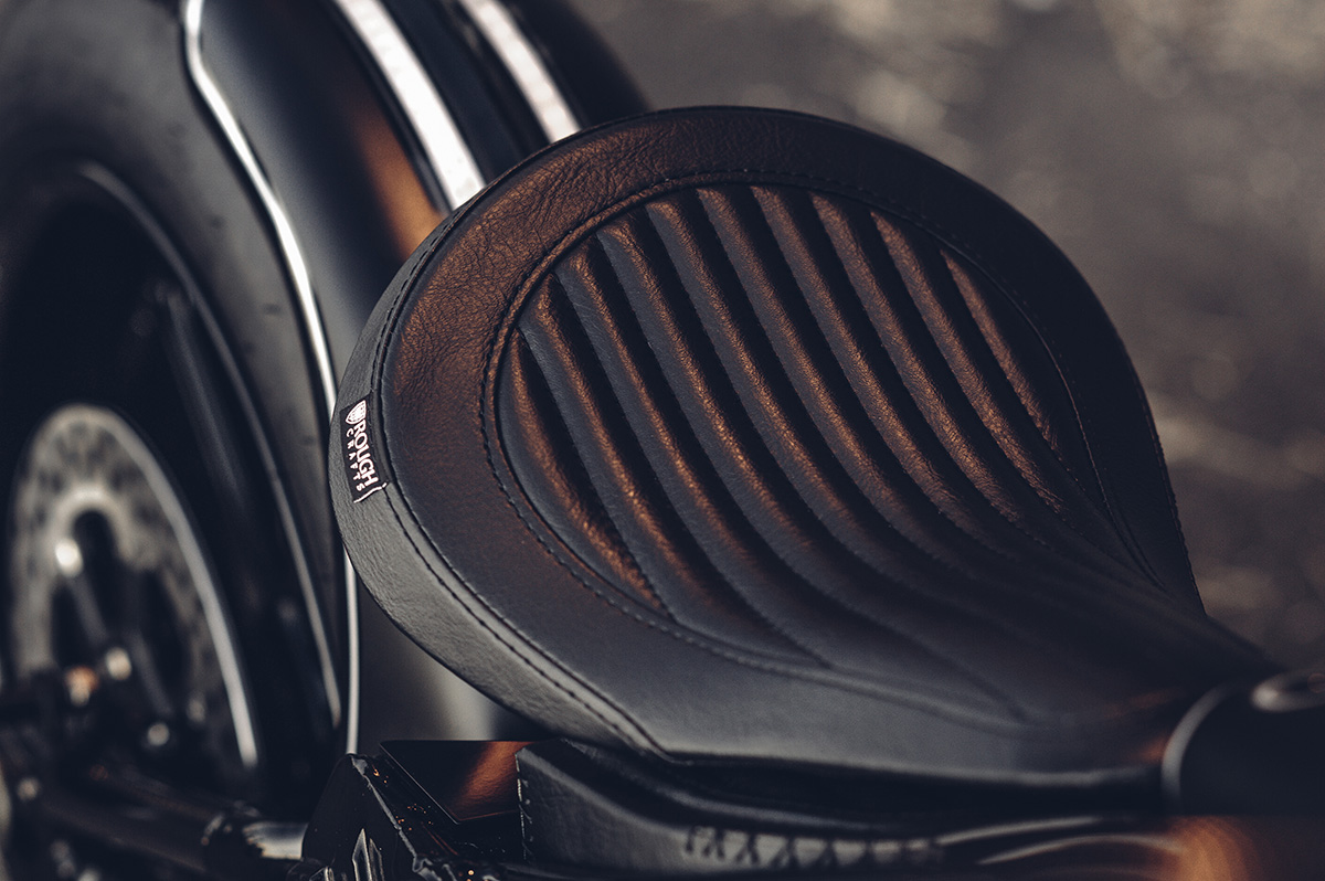 Dwa najciekawsze elementy – fikuśny zbiornik paliwa i tylny błotnik – to ręczna robota ekipy Rough Crafts, tak jak osłony, przednia lampa, podnóżki, światło stopu i siedzenie.
