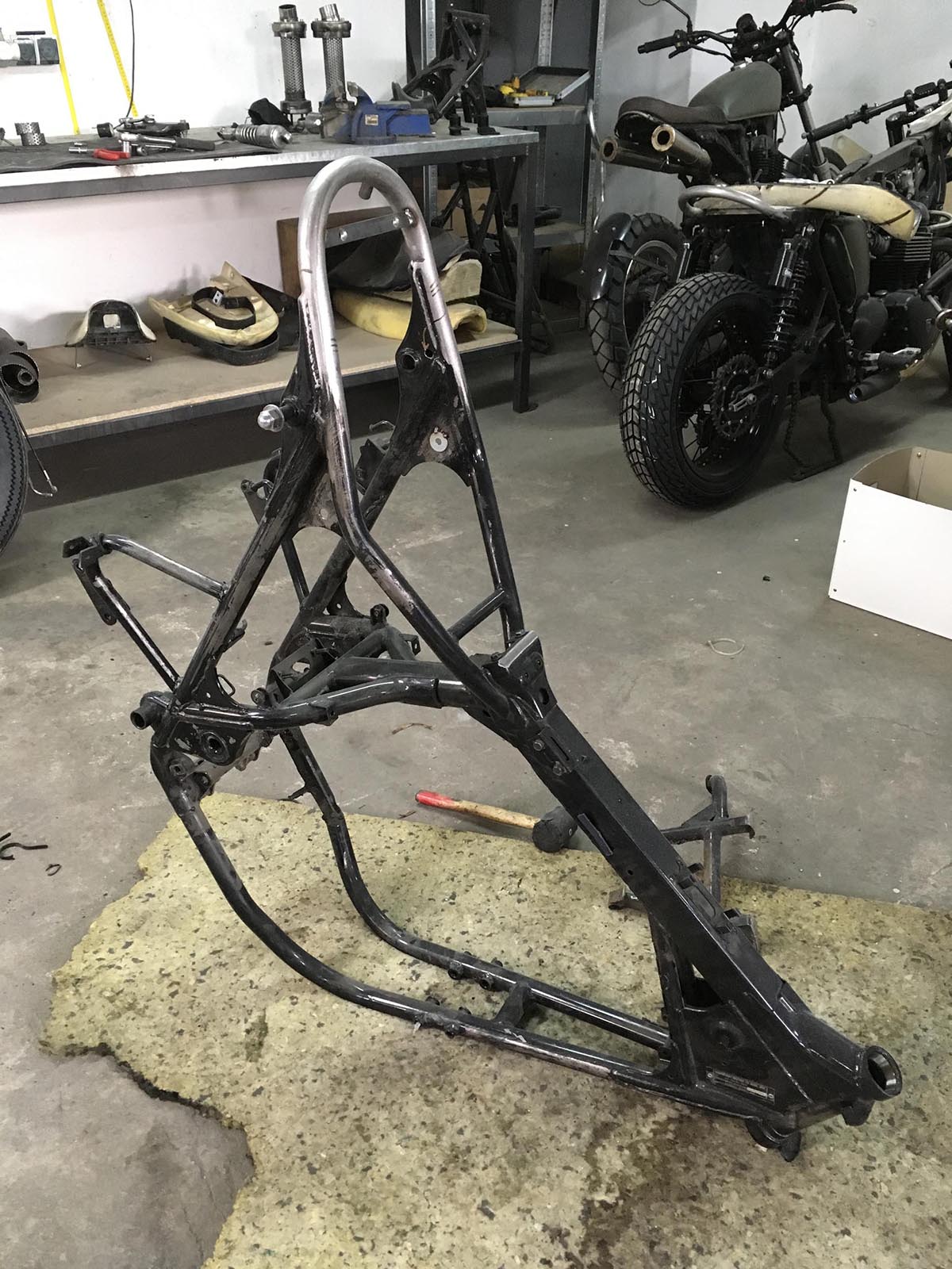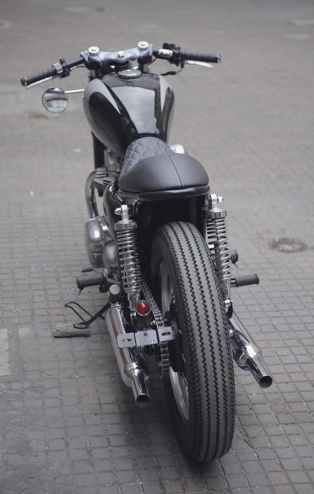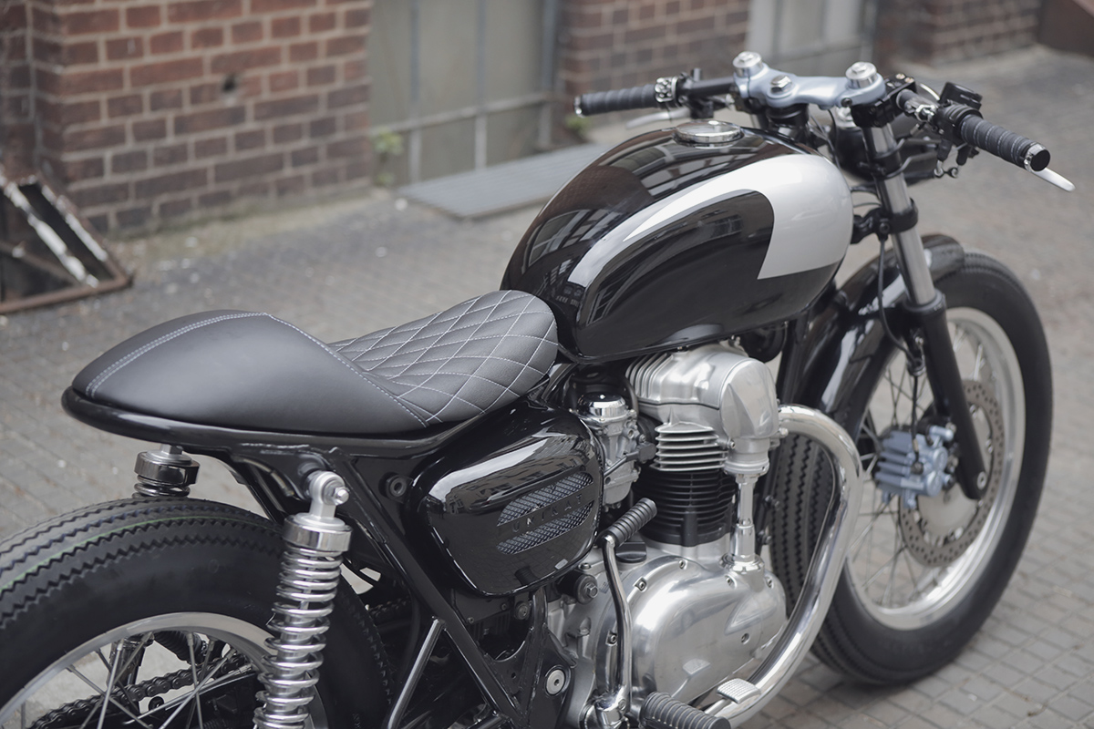 Wybór padł na Kawasaki W650 i przeróbkę na cafiaka o klasycznej linii. Dodatkowym utrudnieniem było zaprojektowanie ramy tak, by motocykl wyglądał na jednoosobowy, ale umożliwiający podróżowanie we dwójkę.