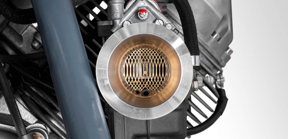 Większość części wykonano na specjalne zamówienie. Spójrzcie tylko na układ wydechowy, przepiękne trąbki na gaźnikach zastępujące filtr powietrza, odwrócone klamki wykonane z lotniczego aluminium, prędkościomierz zrobiony z precyzyjnie wytrawionego litego mosiądzu, czy końcówkę gitarowej wtyczki z wbudowanym czujnikiem do immobilisera, zastępującej kluczy. Każdy detal prezentuje się imponująco.