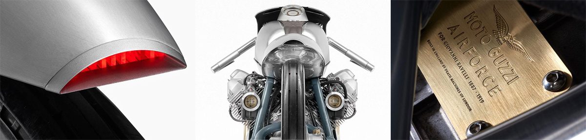 Dzieło sztuki tworzy treść i forma. Treść to idee przekazywane przez dzieło. W przypadku Airforce treść nie jest przypadkowa, bowiem motocykl został stworzony jako hołd dla Giovanniego Ravelliego – wyjątkowego pilota Królewskich Wojsk Lotniczych oraz współzałożyciela marki Moto Guzzi. Niestety “Włoski Diabeł” 11 sierpnia 1919 roku zginął w katastrofie lotniczej, a ku jego pamięci umieszczono w logotypie marki orła z rozpostartymi skrzydłami.