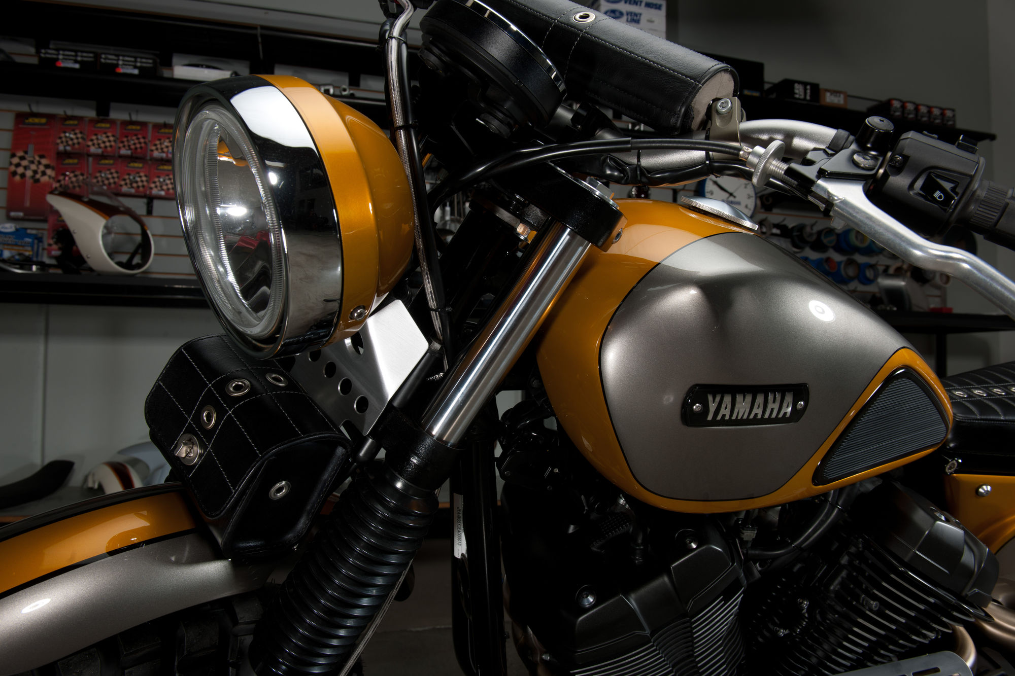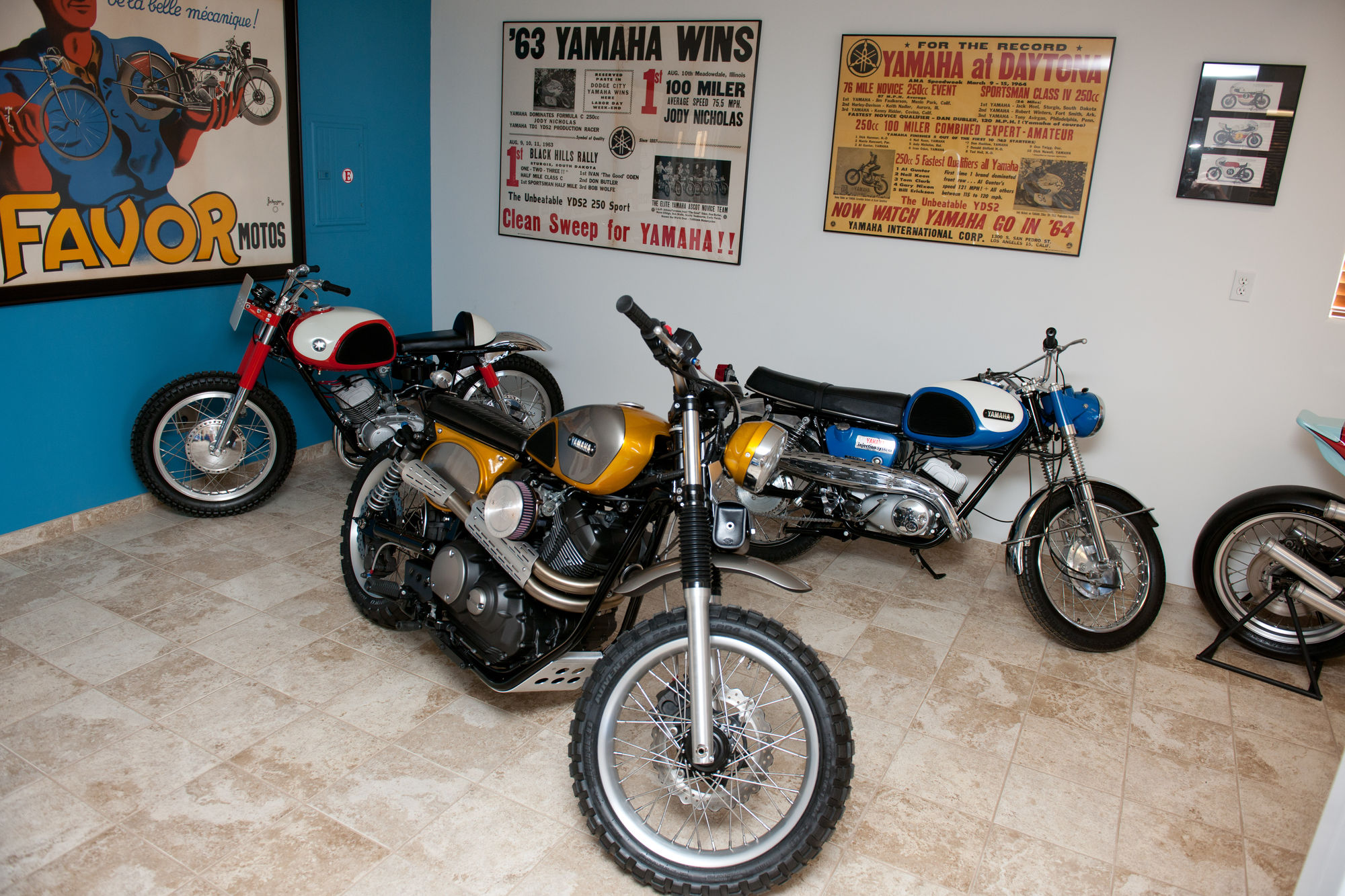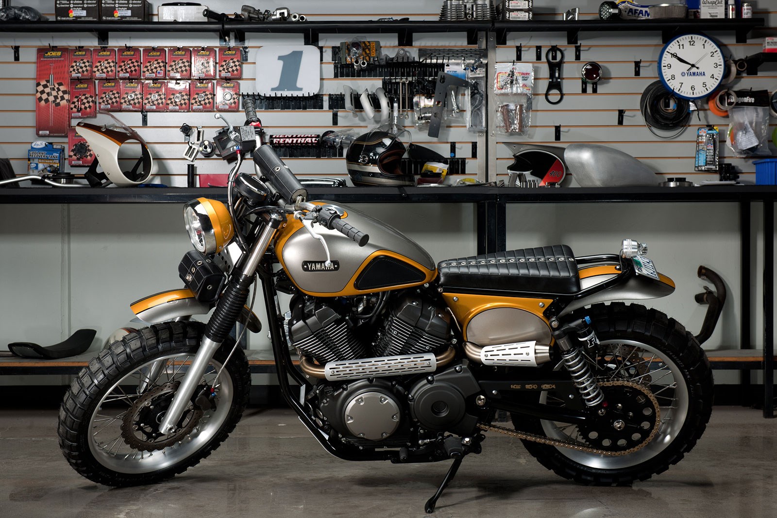Jeff Palhegyi, budowniczy z południowej Kaliforni, współpracuje z Yamahą od 22 lat i w tym czasie zbudował 70 customowych motocykli z logotypem składającym się z trzech skrzyżowanych kamertonów.